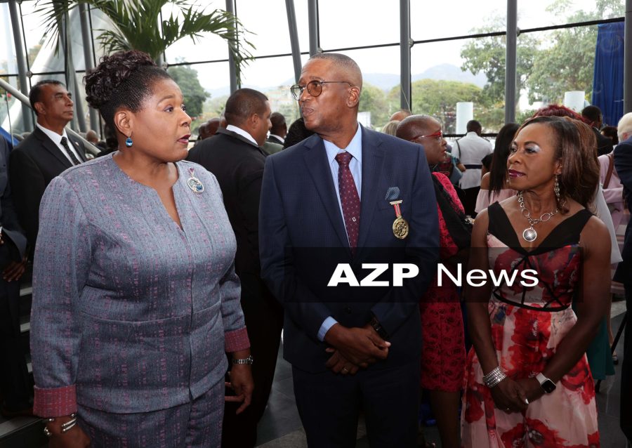 Caption: Former President Paula-Mae Weekes, left, with Chief Justice Ivor Archie and his wife By Prior Beharry …