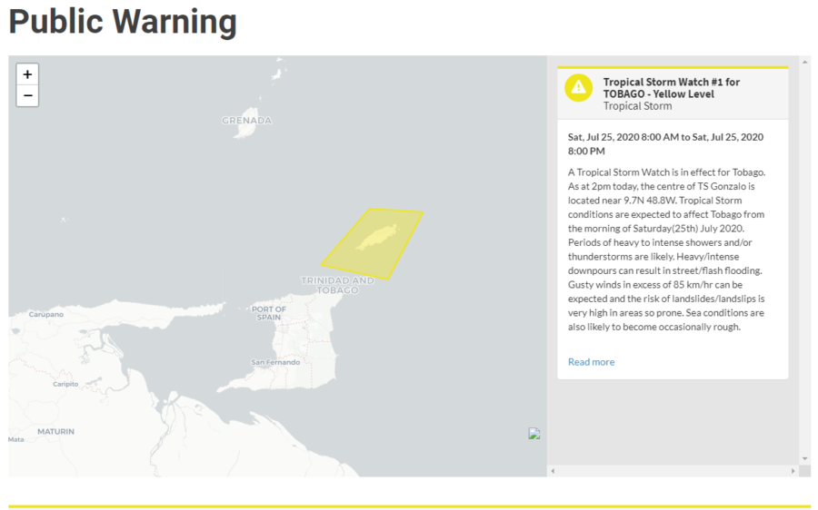 A Tropical Storm Watch is in effect for Tobago.