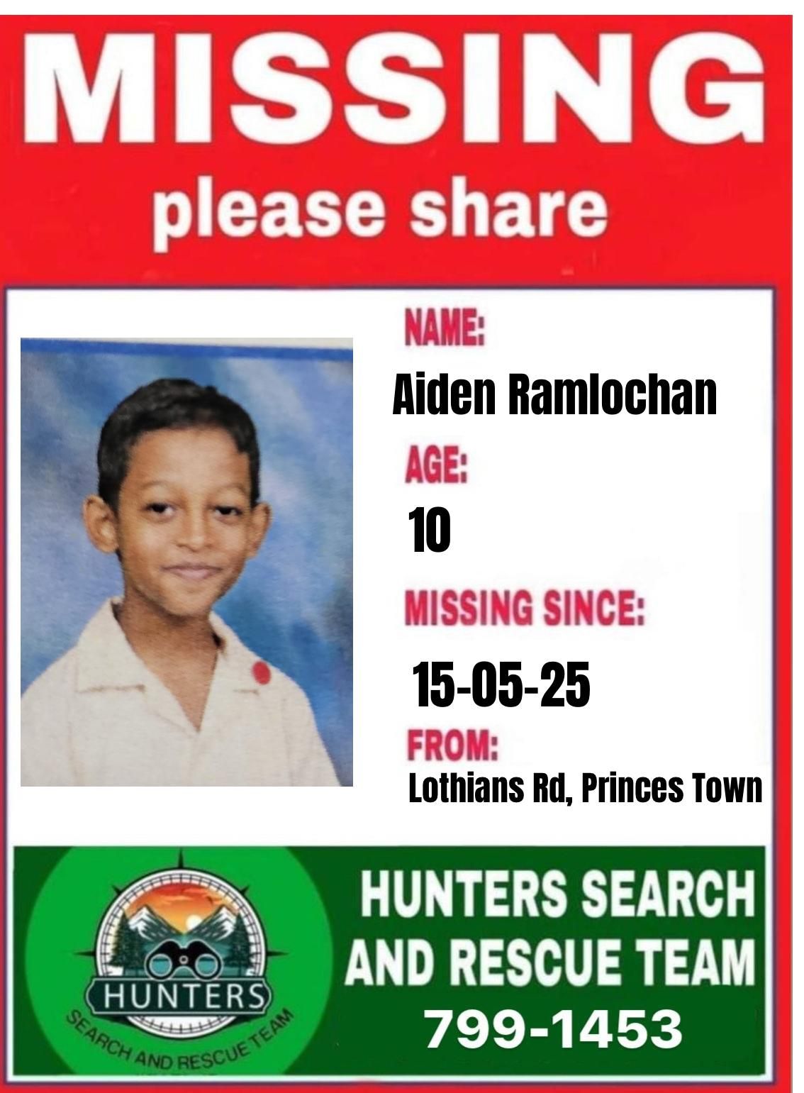 Hunters Search and Rescue Team posted out a bulletin on its social media pages stating that Ramlochan attended the Princes Town ASJA Primary School and was last seen wearing his school’s uniform.