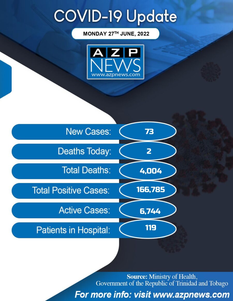 The Ministry of Health in its latest update (#1,133), noted that there were 73 new positive cases.