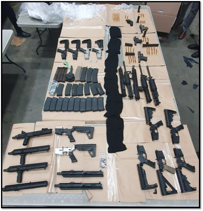 Caption: Concealed firearms, firearms components, and ammunition retrieved from the punching bags Summary Port of Spain man Shem …