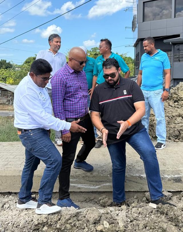 Caption: From left, WASA acting CEO Jeevan Joseph, Chairman Roshan Babwah, and Mayaro MP Nicholas Morris, assess the …
