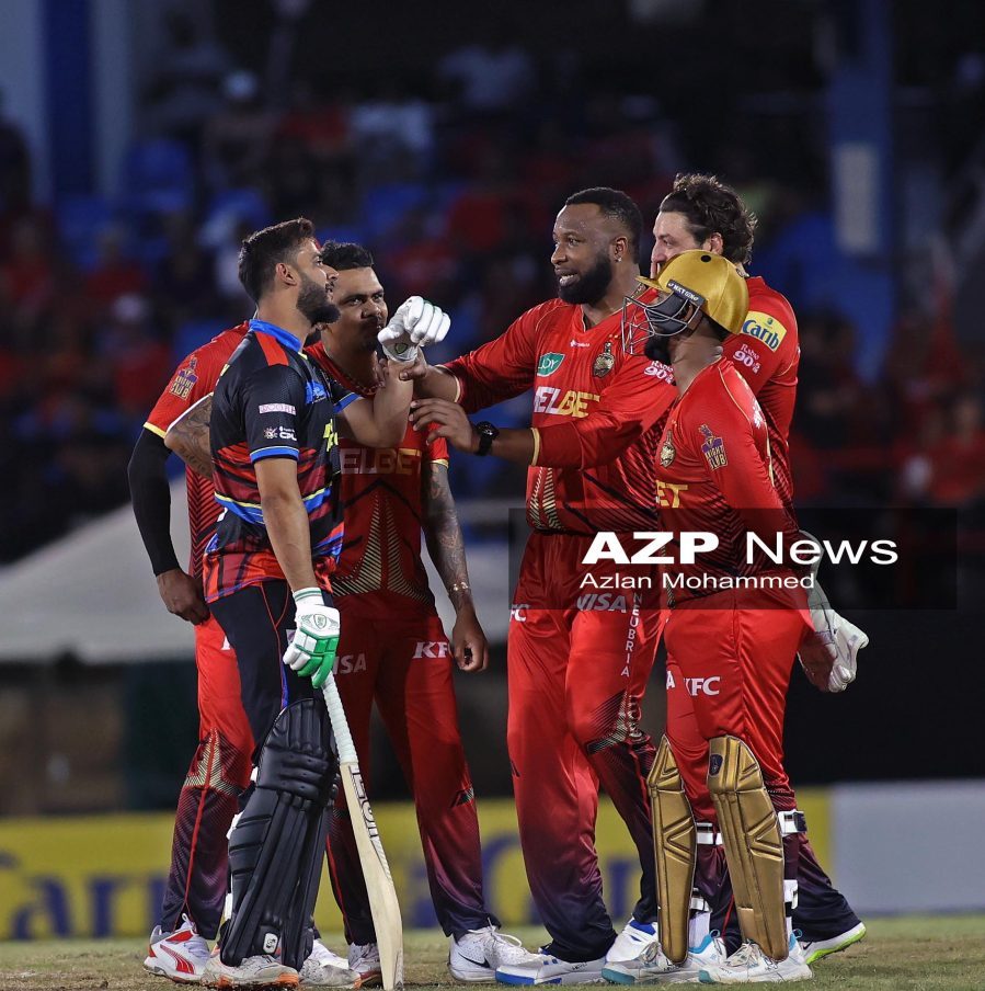 Caption: TKR players wearing number 47 on their t-shirts celebrate the wicket of Gudakesh Motie. Photo AZP News/Azlan …