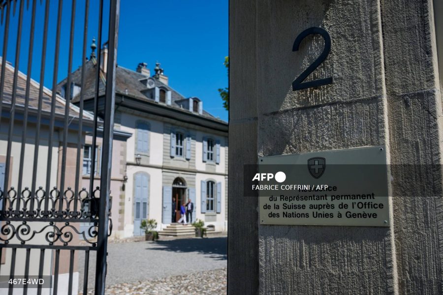 Caption: A picture taken on May 10, 2025, shows the entrance of the residency of the permanent Swiss …