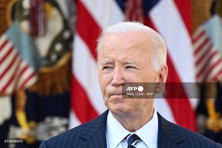 Caption: US President Joe Biden addresses the nation from the Rose Garden of the White House in Washington, …