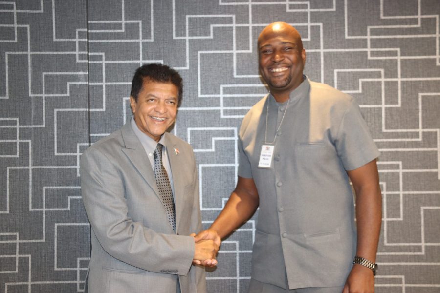 Caption: Health Minister Dr Lackram Bodoe, left, shakes hands with President of the Trinidad and Tobago National Nurses …