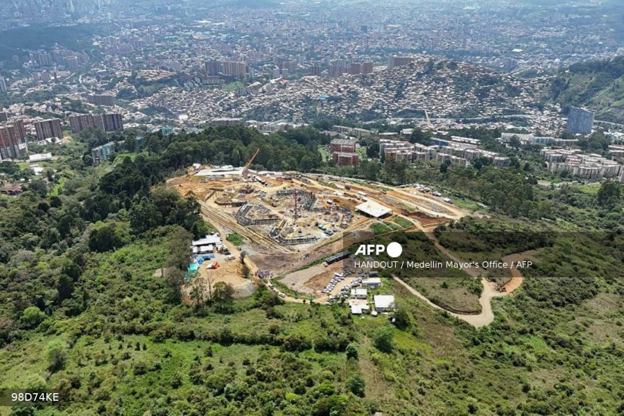 Caption: Handout picture released by the Medellin Mayor's Office showing an aerial view of the construction site of …