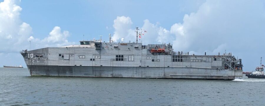 THE US Navy expeditionary fast transport USNS Burlington (T-EPF 10) docked at the Port of Port of …
