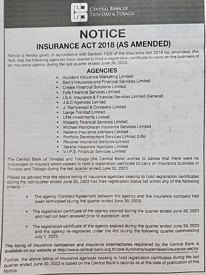 IN a recent publication in the daily newspapers it was revealed that 16 insurance agencies have ceased to …