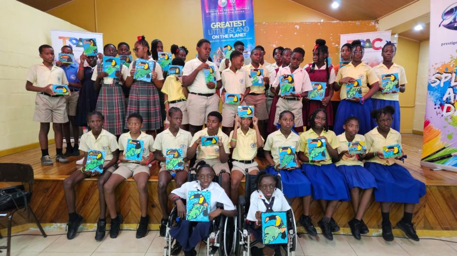 Caption: Students of the Mason Hall, Moriah, Castara and Parlatuvier Primary Schools display their artwork from the “Splash …