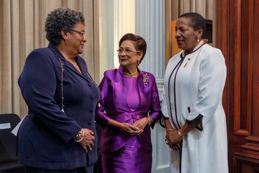 Caption: Prime Minister Kamla Persad-Bissessar, centre, with Barbados PM Mia Mottley, left, and Opposition Leader Pennelope Beckles. Photo: …