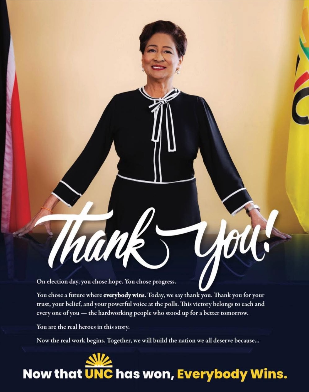PRIME Minister-elect Kamla Persad-Bissessar has extended gratitude to the people of Trinidad and Tobago following the United National …