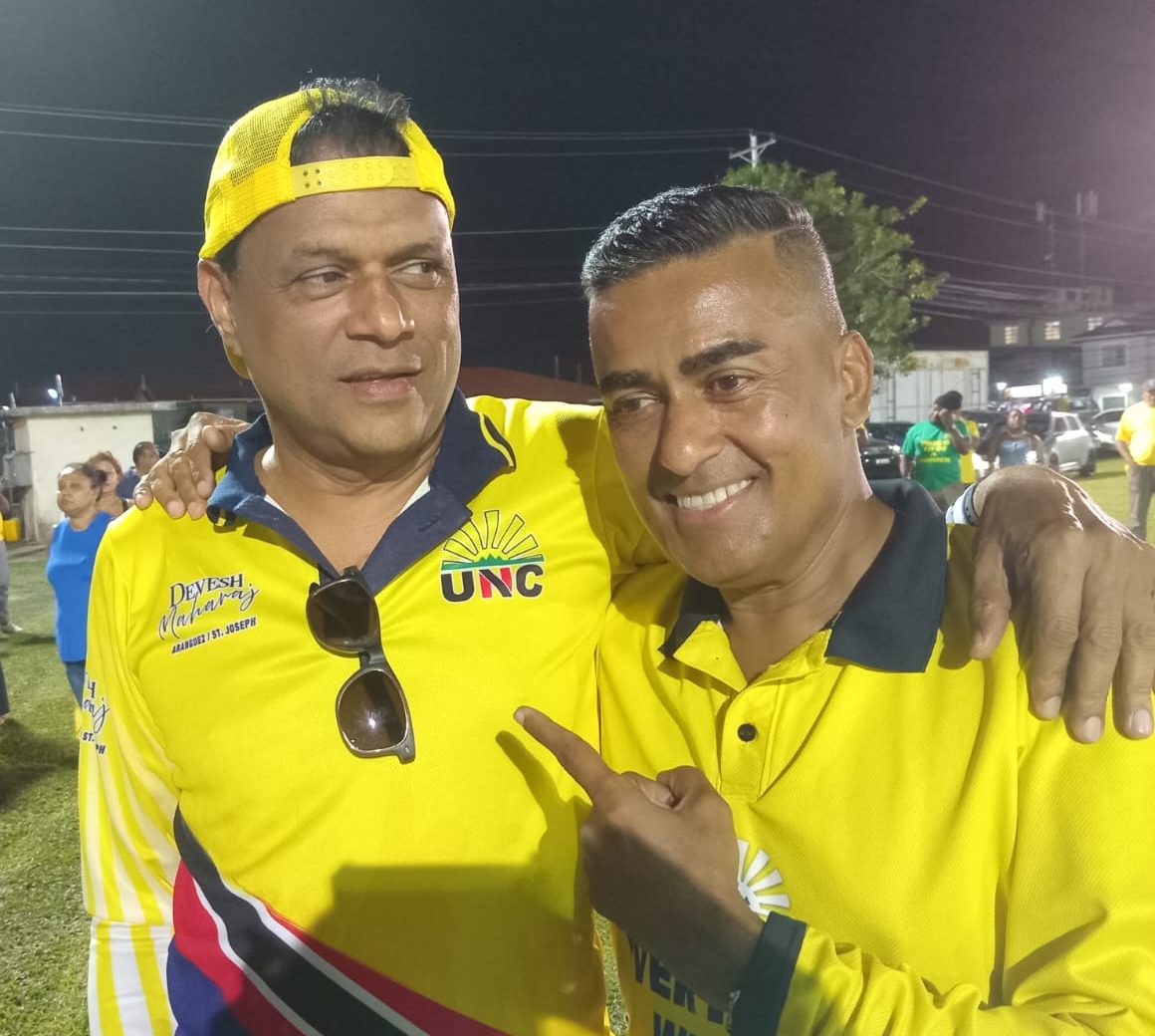 Caption: UNC candidate for Aranguez/St Joseph Devesh Maharaj, left, with UNC candidate for Fyzabad Dave Tancoo. AZP News/Prior …