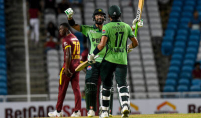 Caption: Hasan Nawaz, right, and Hussain Talat carried Pakistan to victory in the opening ODI against West Indies …