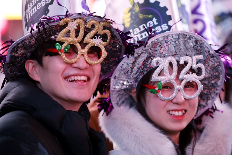 Caption: Revellers celebrate New Year’s Eve in Times Square on December 31, 2024, in New York City. AFP/Leonardo Munoz