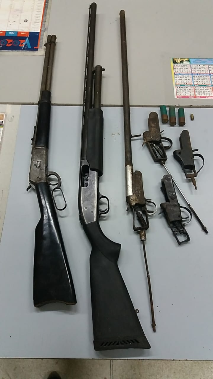 The camp was searched and three-homemade shotguns, one 357 rifle, one Mosberg 500A 12-gauge shotgun, along with three rounds of 12-gauge cartridges, and another with one spent nine millimetre casing were found.