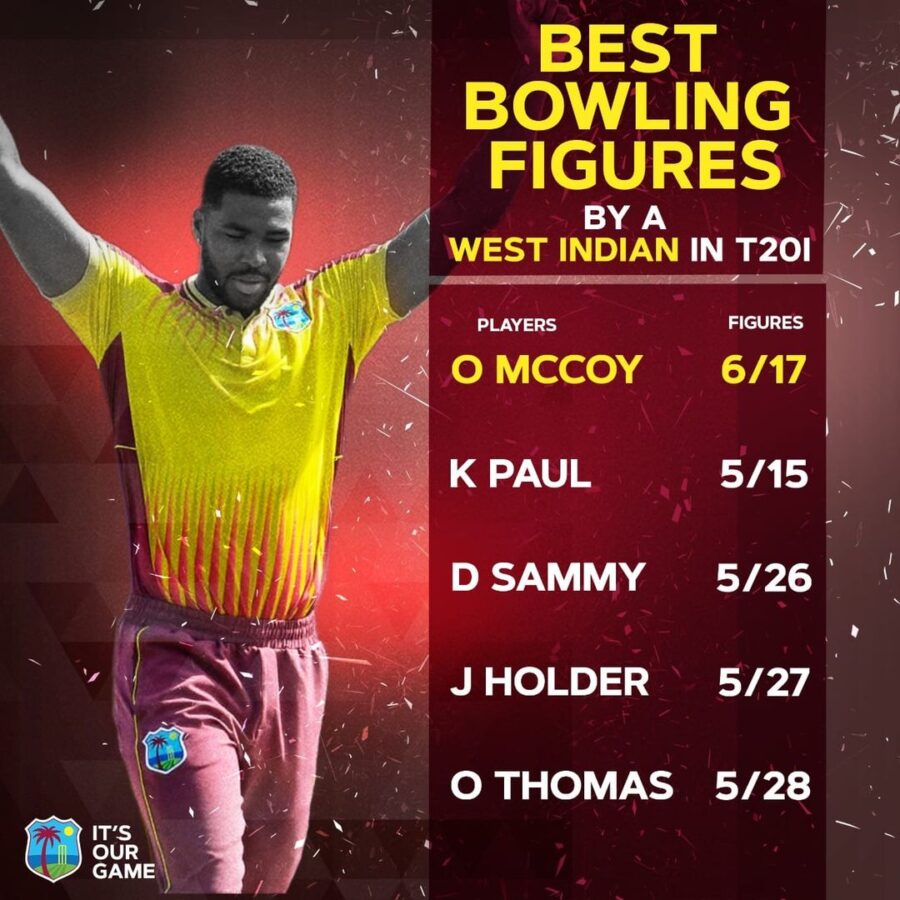 McCoy figures of 4 for 17 in his four overs were also the best by any bowler against India in this format of the game.