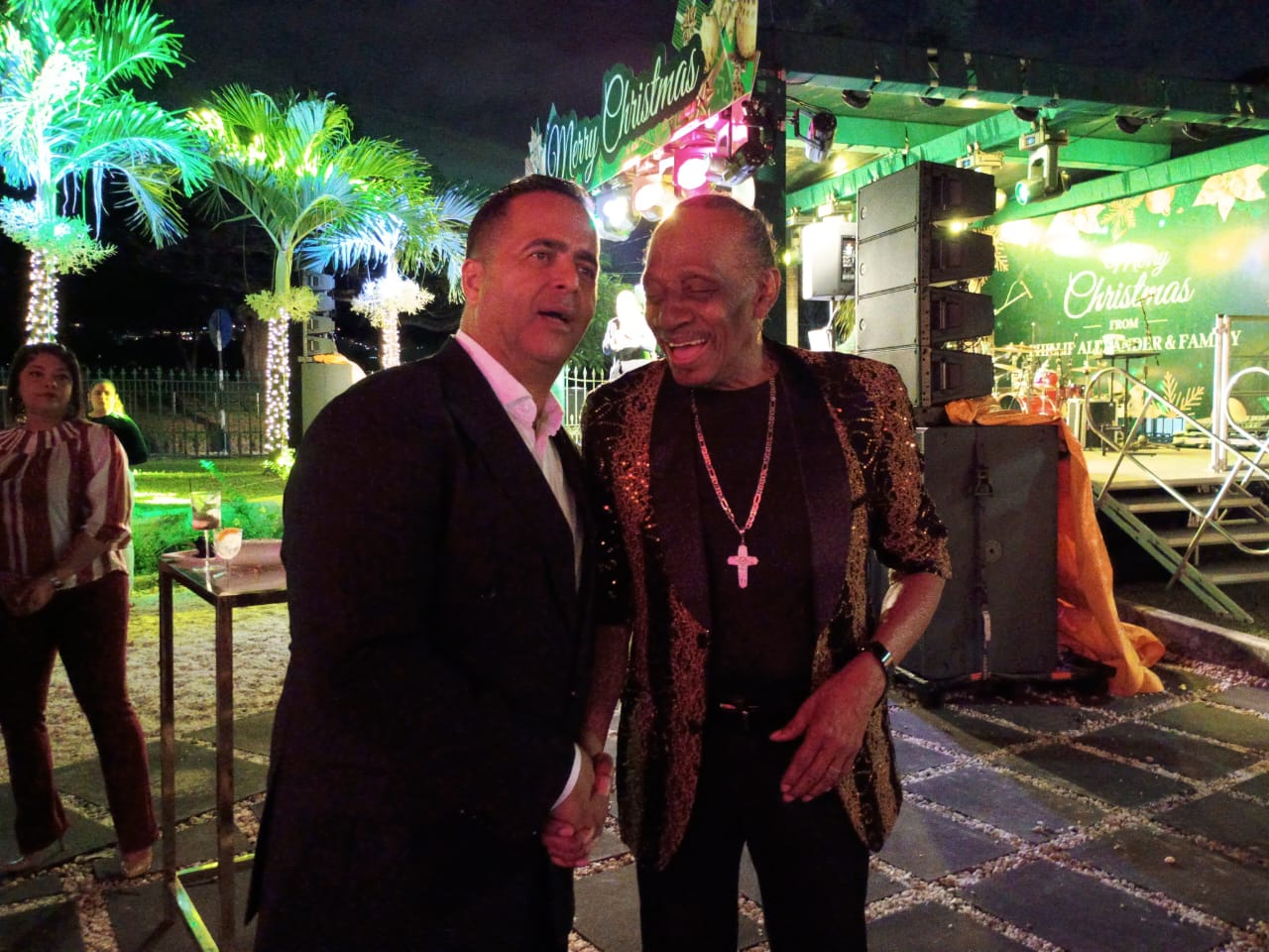 @azpnews.com Iwer George with Phillip Alexander at his Christmas party at Stollmeyer’s Castle on Sunday. Video: Prior Beharry @p_edwardalexandercutt @iwer.george #iwergeorge #phillipalexander #christmasparty #stollmeyerscastle #soca