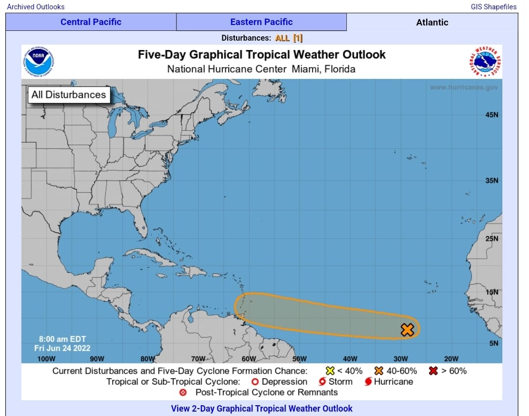 “The potential for development of this system into a tropical cyclone has been upgraded by the National Hurricane Center (NHC) to a 20% chance over the next 48 hours and a 60% chance through the next five days,” TTMS stated.
