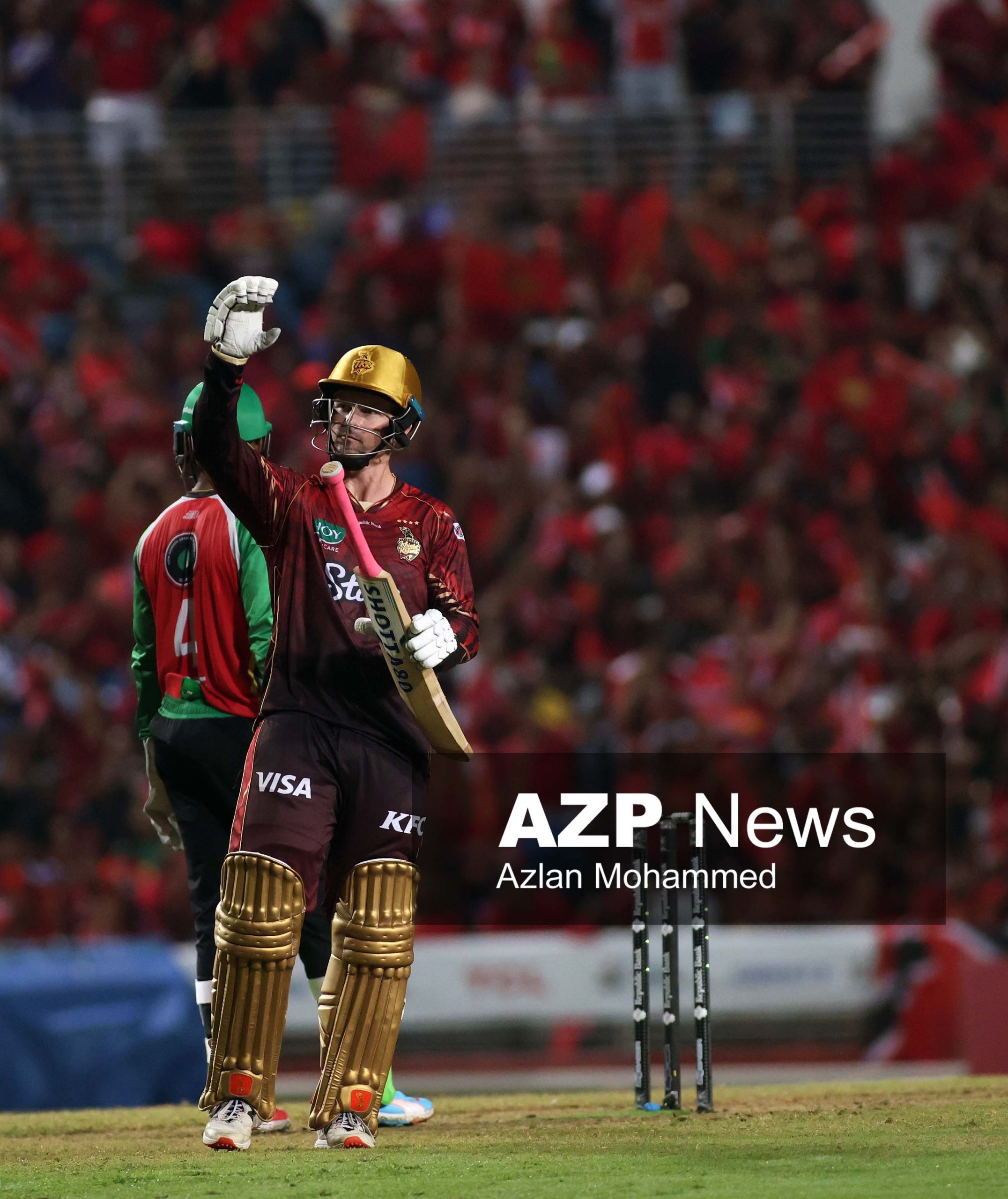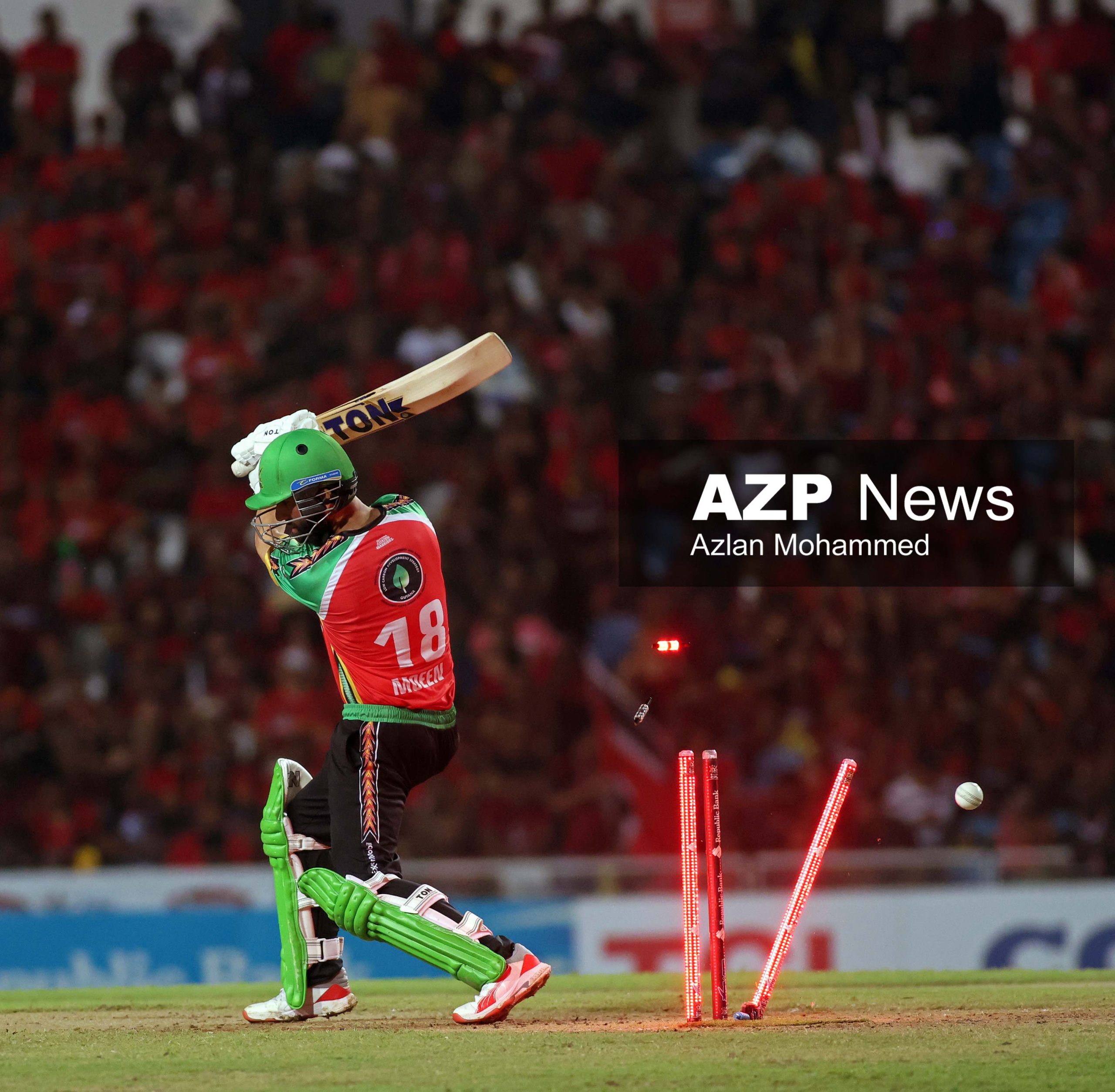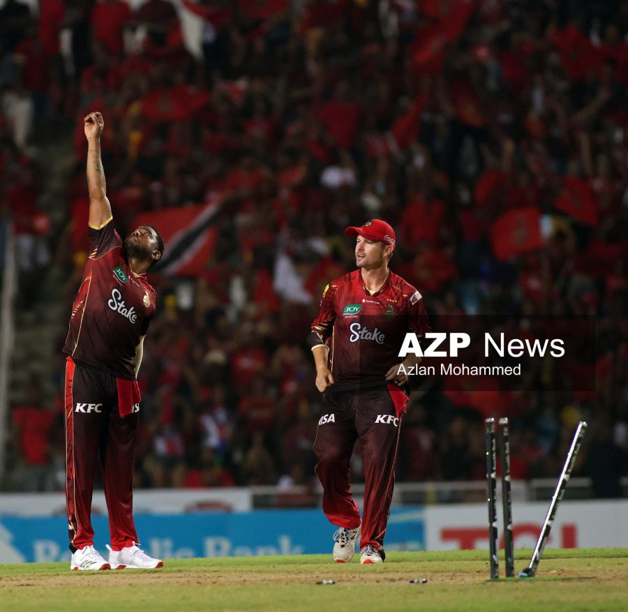 TKRĀ 169-4 in 17.2 overs (Alex Hales 74, Colin Munro 52, Andre Russell 27 not out, Kieron Pollard 12 not out; Imran Tahir 4-27) beats Guyana Amazon Warriors 163-9 in 20 overs (Shai Hope 39, Quentin Sampson 25, Dwaine Pretorius 21, Romario Shepherd 19, Hassan Khan 17, Ben McDermott 14; Akeal Hosein 3-27, Terrance Hinds 2-35) by six wickets.
