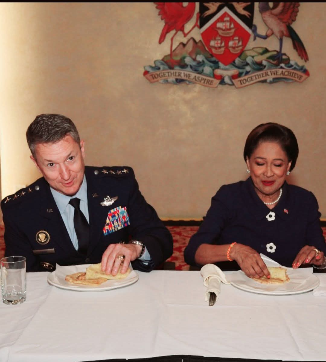 On X, Persad-Bissessar said, “When Chairman of the Joint Chiefs of Staff Gen. Dan Caine said he’d heard about Trinidad and Tobago’s famous ‘doubles,’ I happily made sure he got to enjoy the taste for himself during his visit today.”