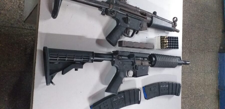 The officers reportedly found a black plastic bag which contained a M4 Assault Rifle with two magazines, ten rounds of 5.56 ammunition, one Heckler and Koch A5 submachine gun with one magazine.