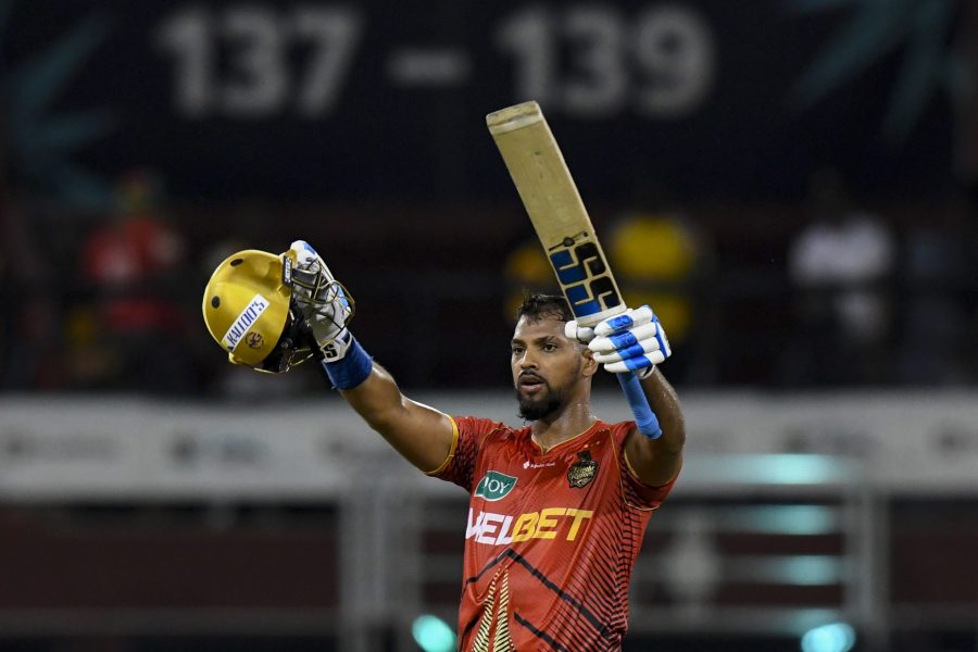 Caption: Nicolas Pooran scores 101. Photo: CPL via Getty Images
