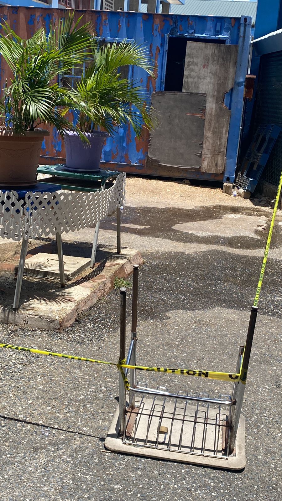 Caption: A photo sent to AZP News that shows a substance leaking on the compound of the Curepe …