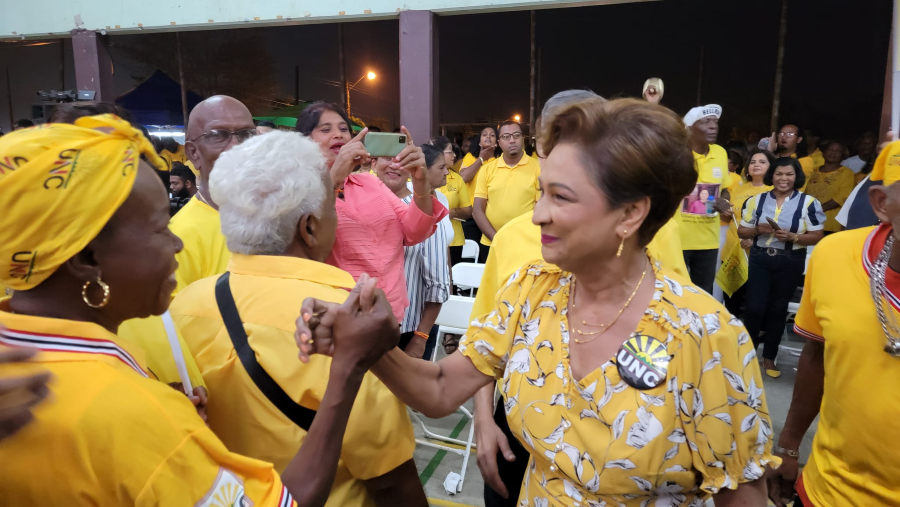 Caption: UNC political leader arrives at the meeting at the Williamsville Secondary School on Monday evening. Photo: Facebook/UNC …