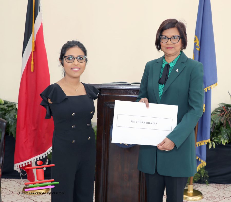 Caption: President Christine Kangaloo presents attorney Veera Bhajan with her letters as a lay assessor. Photo: Information Division …