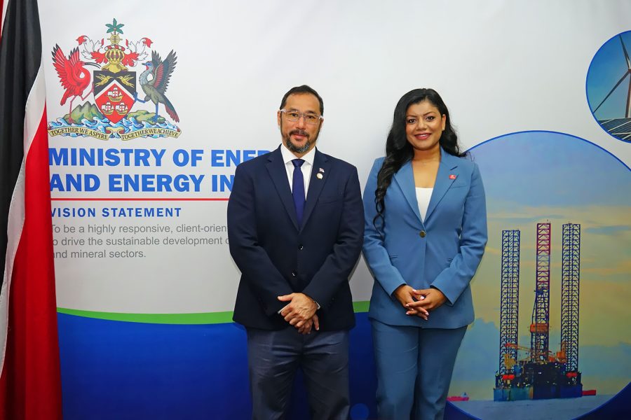 Caption: Woodside Energy Country Manager for Trinidad and Tobago Kellyanne Lochan with acting Prime Minister Stuart Young. Photo: …