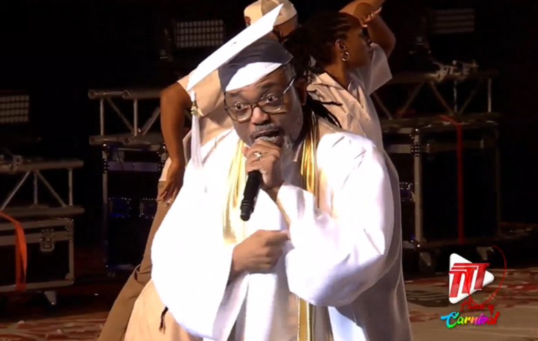 Caption: A screengrab of the TTT Live stream of Machel Montano during his winning performance By Prior Beharry …