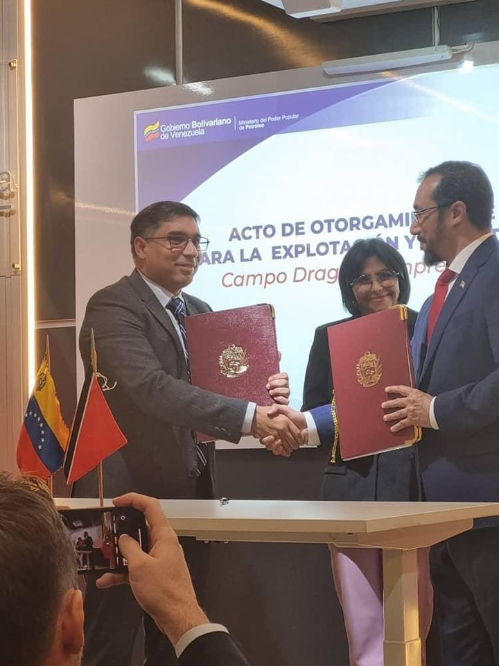 The Dragon gas field holds up to 4.2 trillion cubic feet of natural gas and is located in Venezuelan waters.