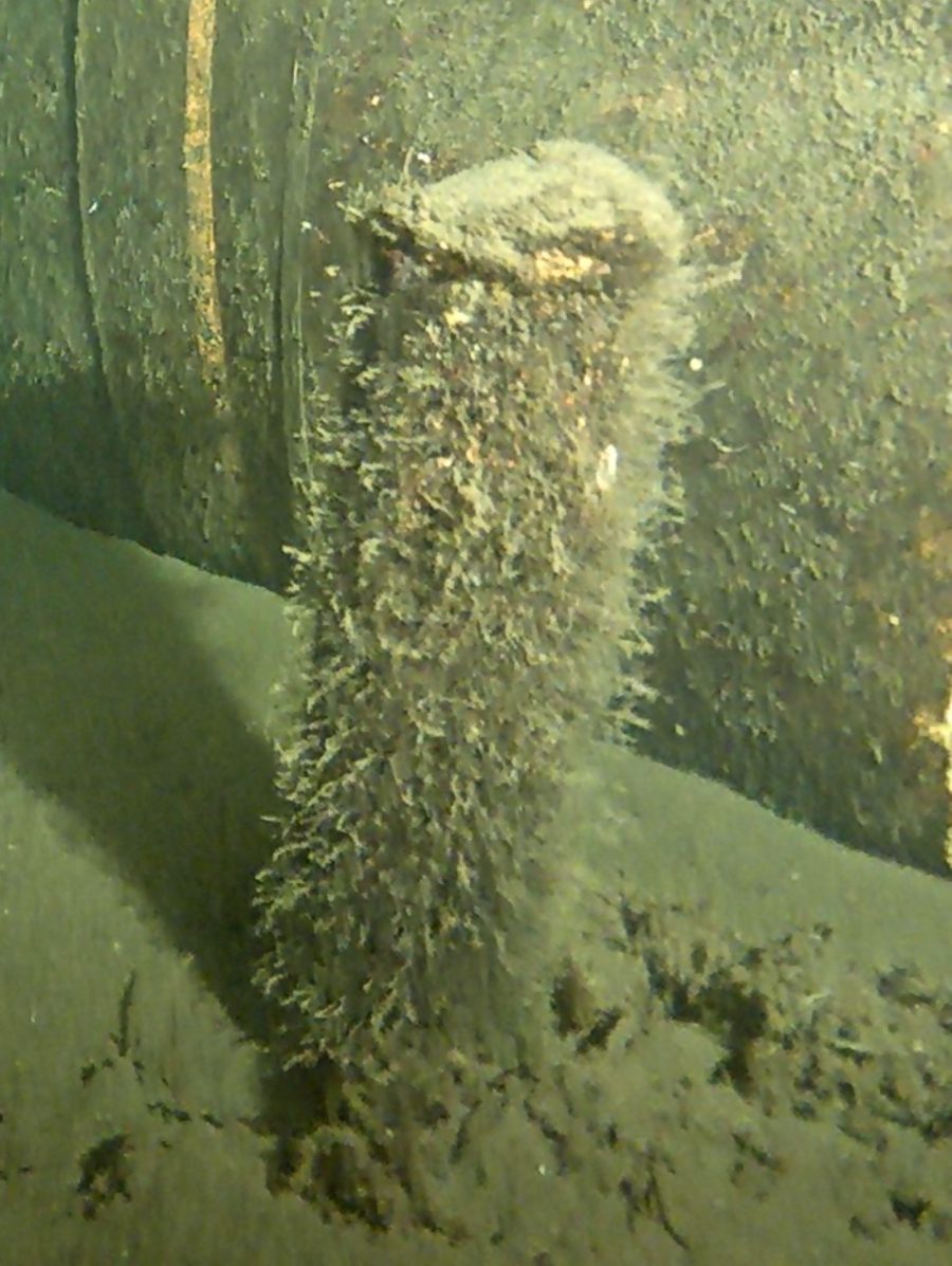 Caption: This undated handout image released by the Danish Energy Agency and Danish Ministry of Defence on March 24, 2023, shows an object found near the Nord Stream 2 pipeline in Danish waters of the Baltic sea. The object is cylindrical and about 40cm tall